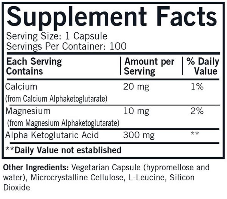 Alpha-Ketoglutaric Acid 300 mgCalcium (from Calcium Alphaketoglutarate) 27mg